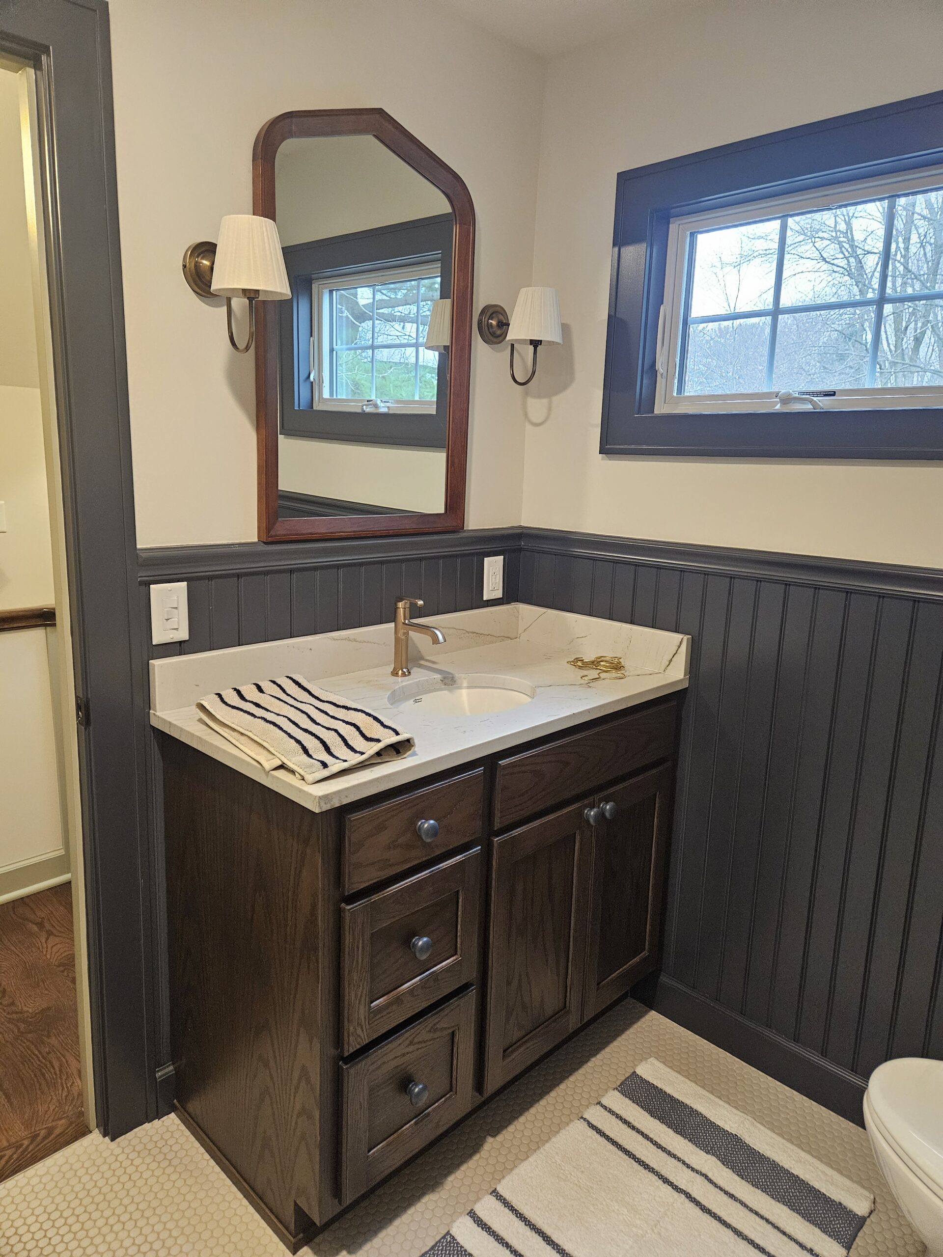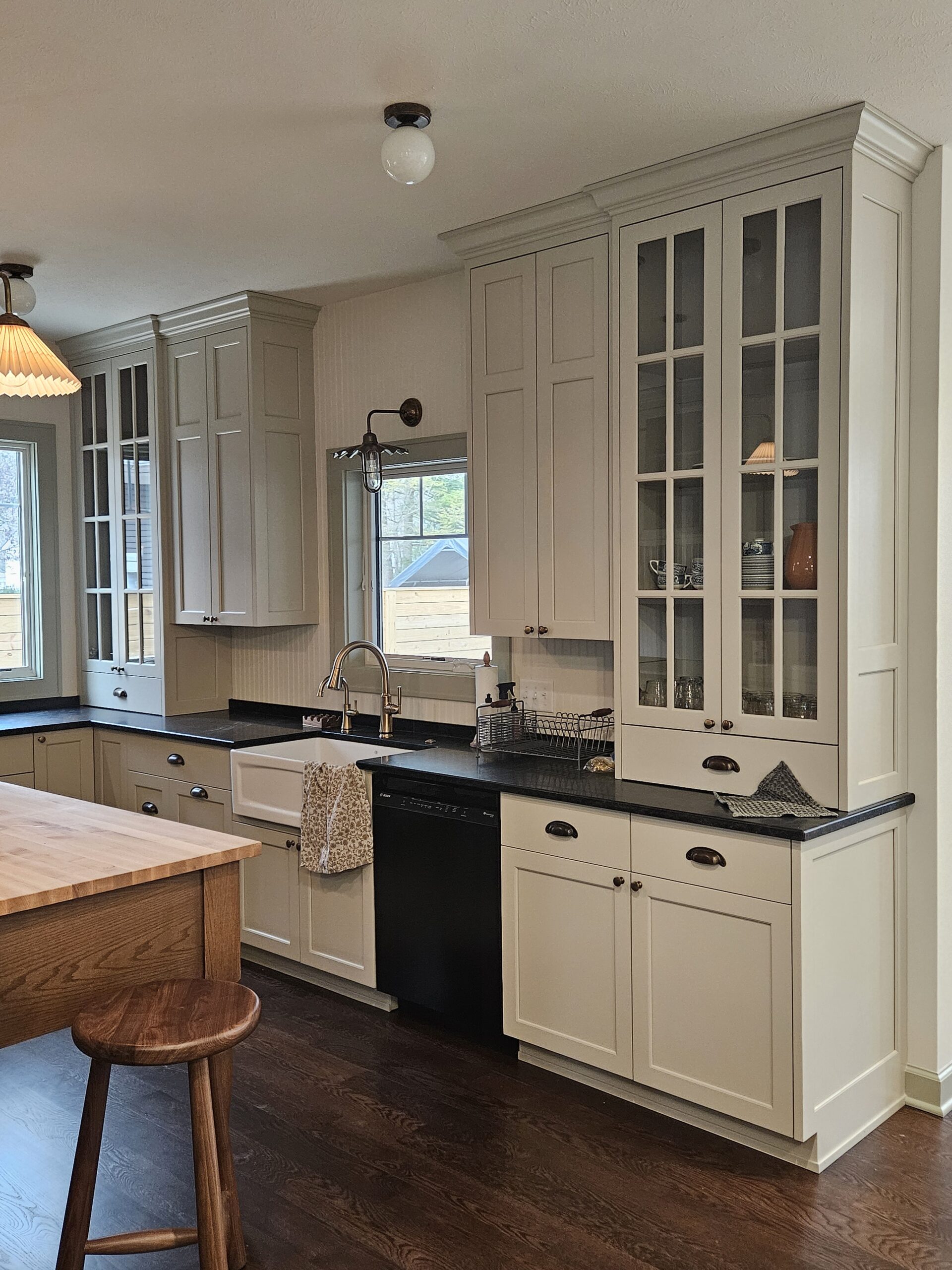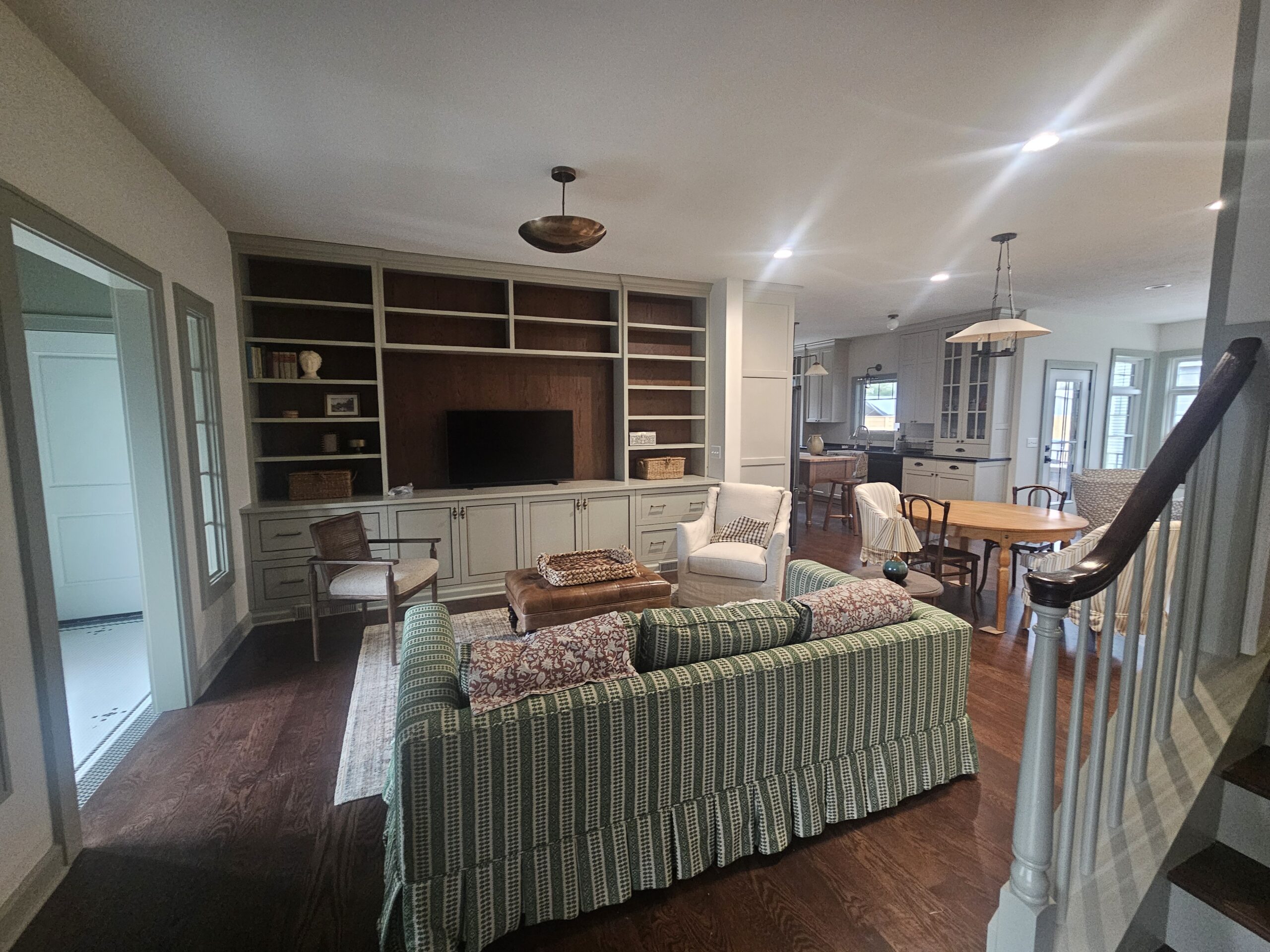 We removed a portion of this house before adding onto it. We completely gutted what was left. There was not a single wire, pipe, or hvac duct that was saved. All systems are new. This house was positioned next door to the clients daughter and her family. They remodeled this space so they could stay next door when visiting from Canada. We worked with an interior designer to accomplish the details they wanted. We installed custom cabinets, custom wall panels with shiplap, custom decorative tiles on the floors. The house has a cozy cottage feel and is just right for a vacation home next to family. The transformation of this house is stunning when you realize what we started with.