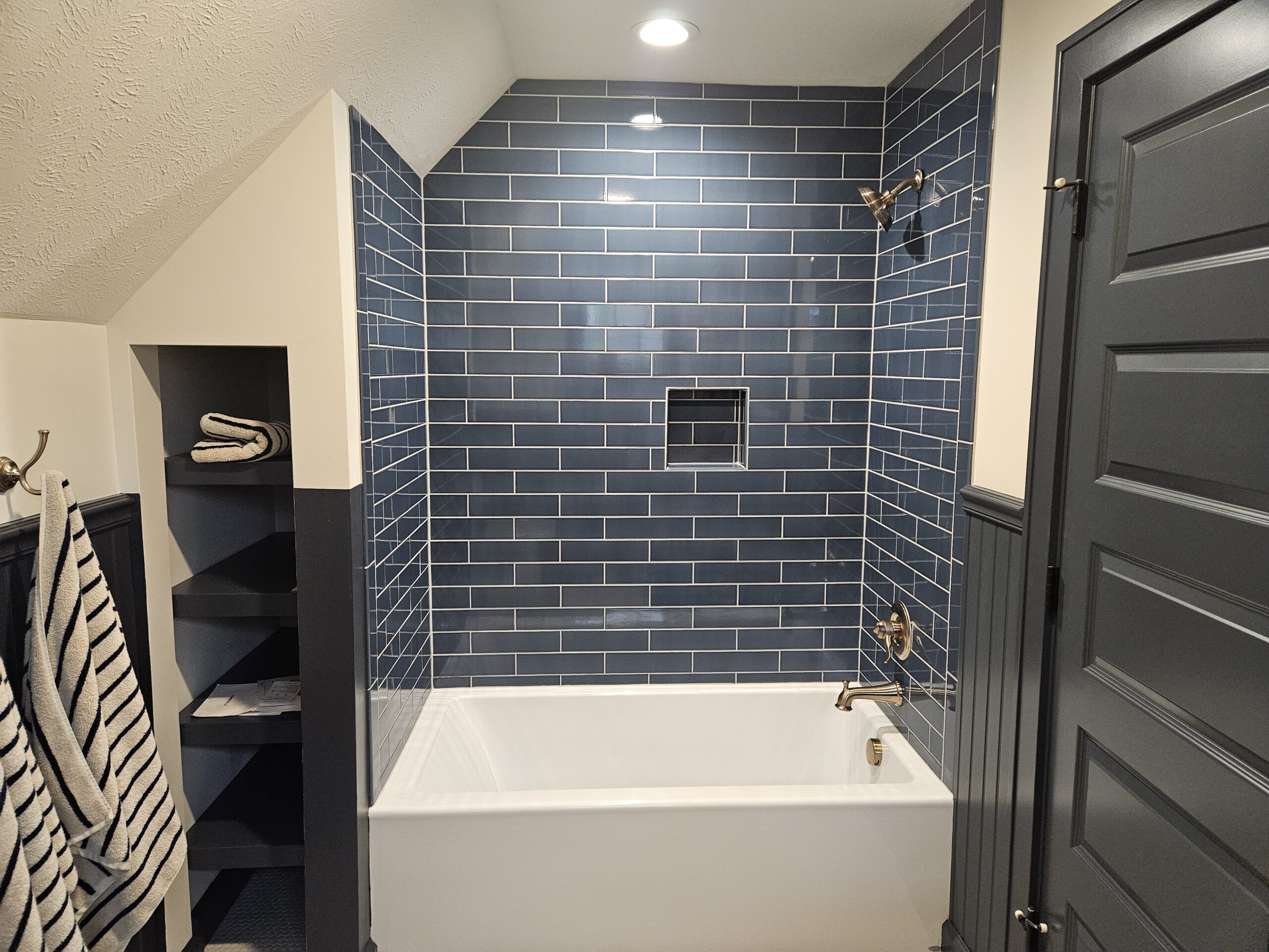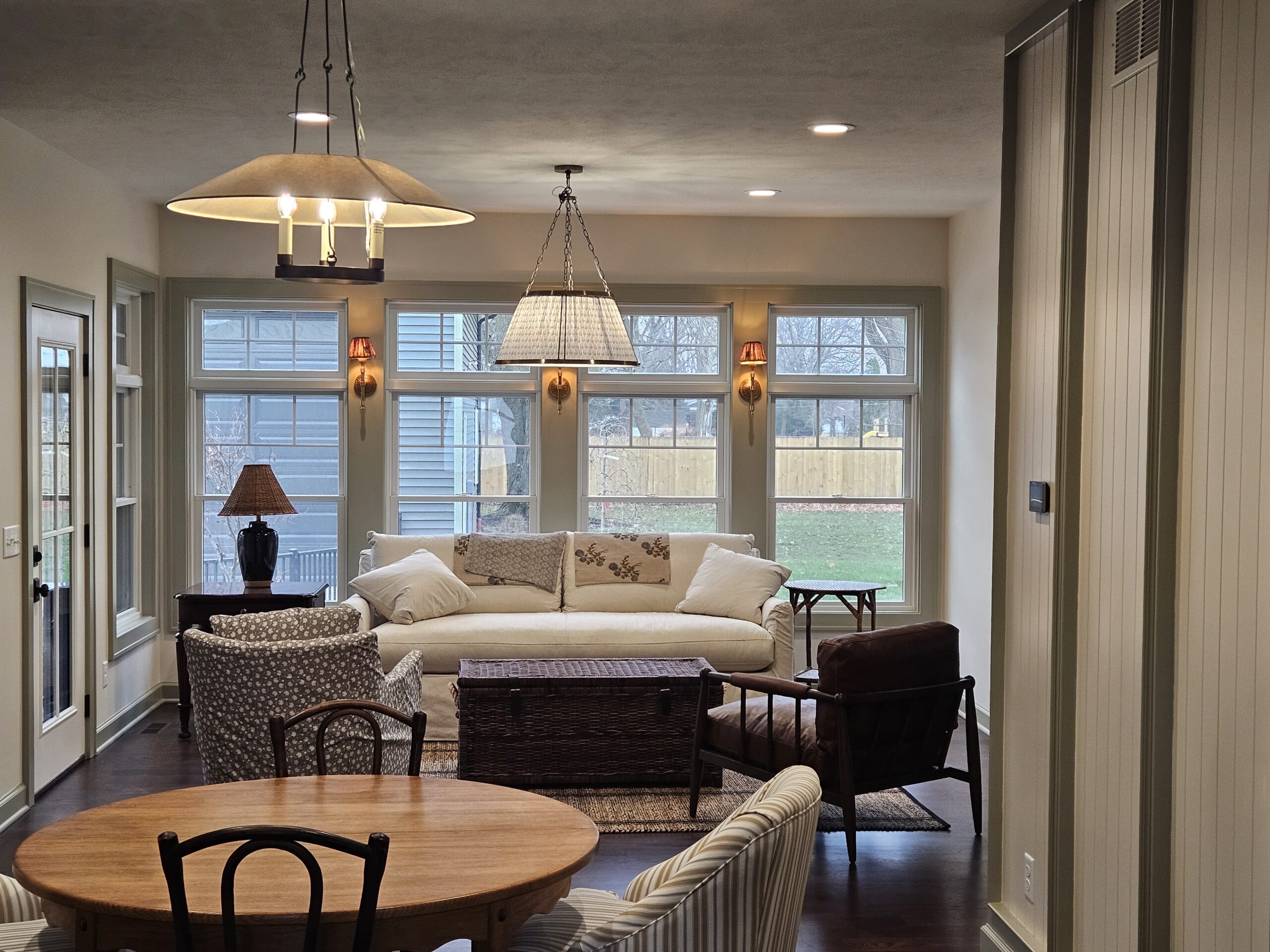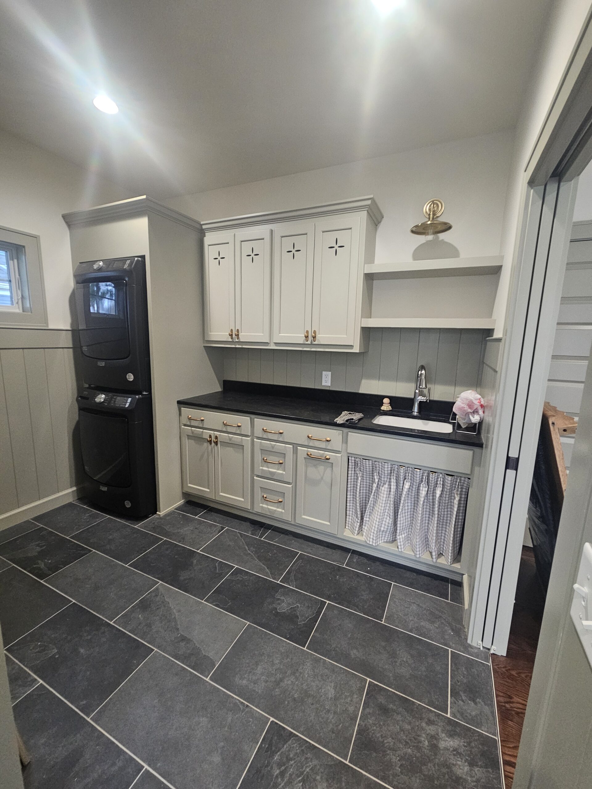 We removed a portion of this house before adding onto it. We completely gutted what was left. There was not a single wire, pipe, or hvac duct that was saved. All systems are new. This house was positioned next door to the clients daughter and her family. They remodeled this space so they could stay next door when visiting from Canada. We worked with an interior designer to accomplish the details they wanted. We installed custom cabinets, custom wall panels with shiplap, custom decorative tiles on the floors. The house has a cozy cottage feel and is just right for a vacation home next to family. The transformation of this house is stunning when you realize what we started with.