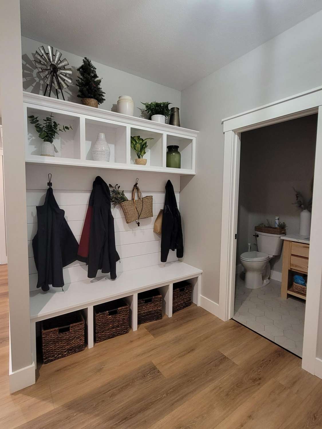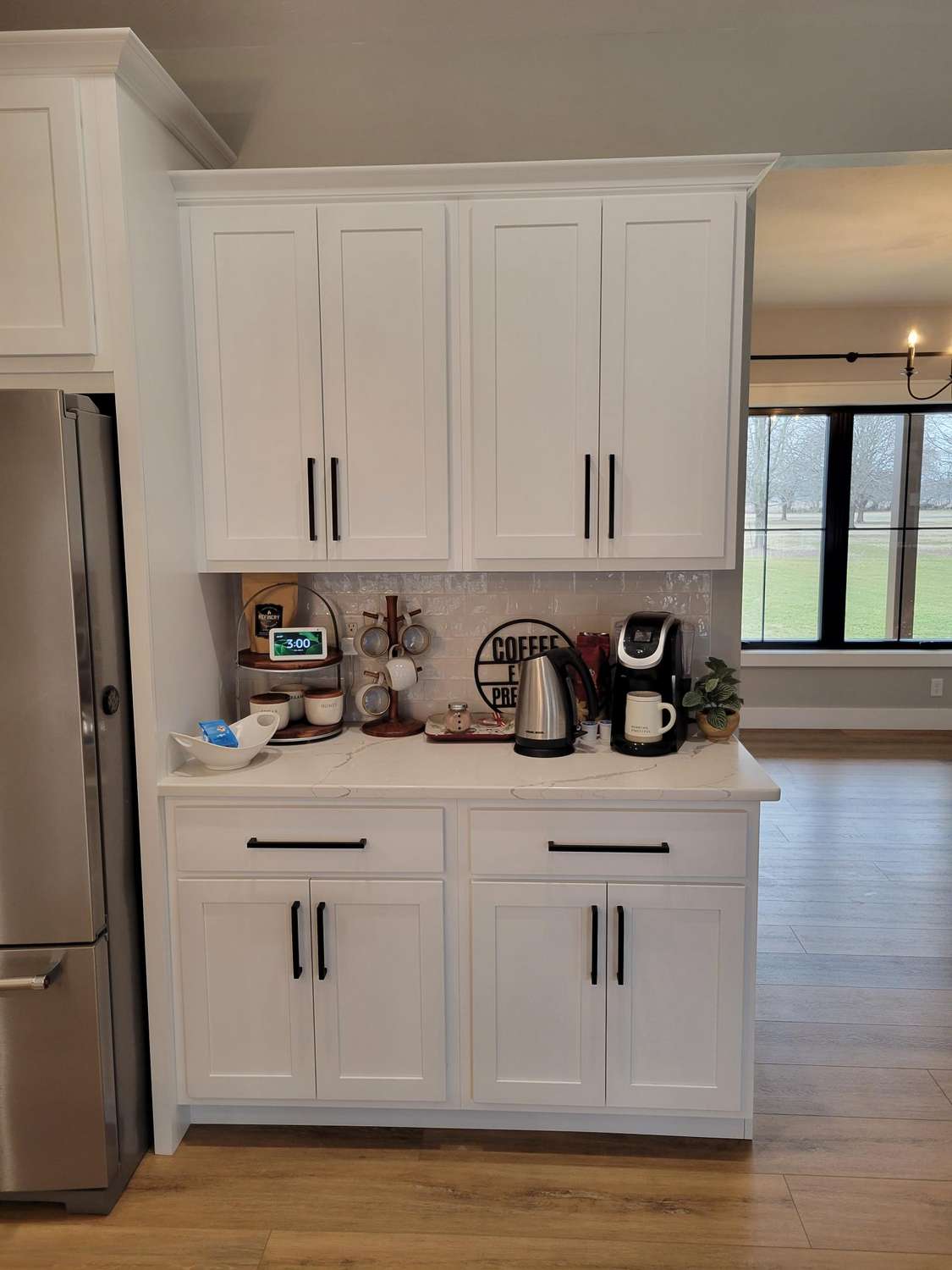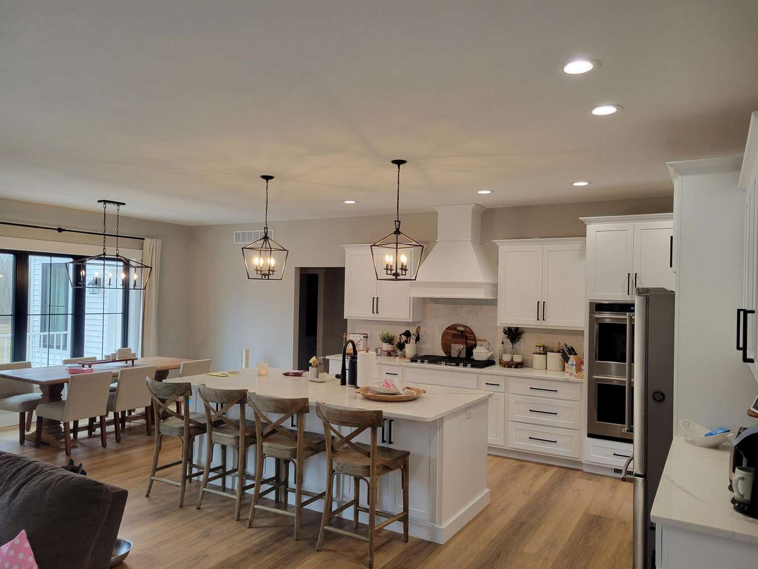 This project stands out for its unique walkout basement, designed to seamlessly blend with the natural surroundings. Positioned at the back of the house, it opens directly onto a peaceful wooded area. The clever design allows ample sunlight to stream through the basement windows, creating an inviting atmosphere that feels just like the main floor. The result is a beautiful home that offers generous space for entertaining on every level, enhanced by the unexpected addition of a bonus safe room tucked away beneath the front porch.